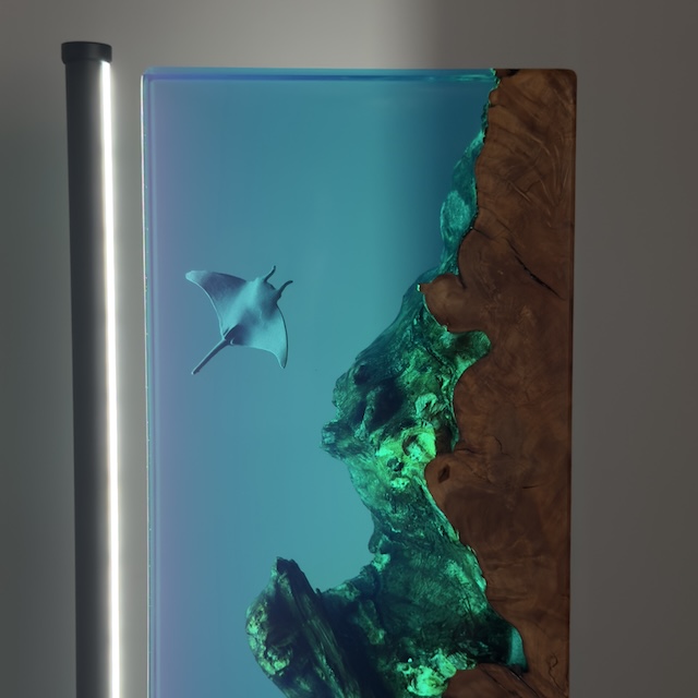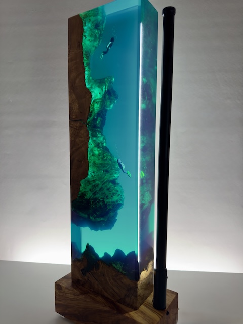 Chaque création est entièrement réalisée à la main, inspirée par les tons turquoise, la lumière et les textures du monde sous-marin, dans un équilibre entre art, nature et design contemporain.